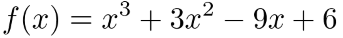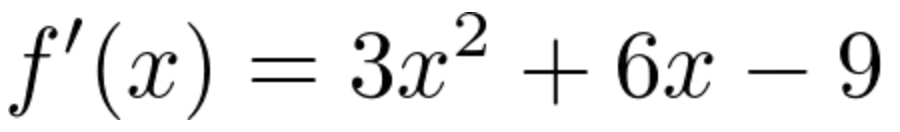 We hebben net vastgesteld dat onze afgeleide gelijk is aan 0 bij x = -3 en x = 1. Om het punt te vinden waar een maximum of minimum punt bestaat in onze functie, moeten we deze waarden in de originele functie invoeren om hun equivalente y-coördinaten te vinden.