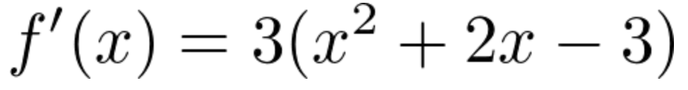 Als je naar de afgeleide hierboven kijkt, zou je moeten zien dat elke term een factor drie in zich heeft. Met dit in gedachten, gaan we onze uitdrukking vereenvoudigen: